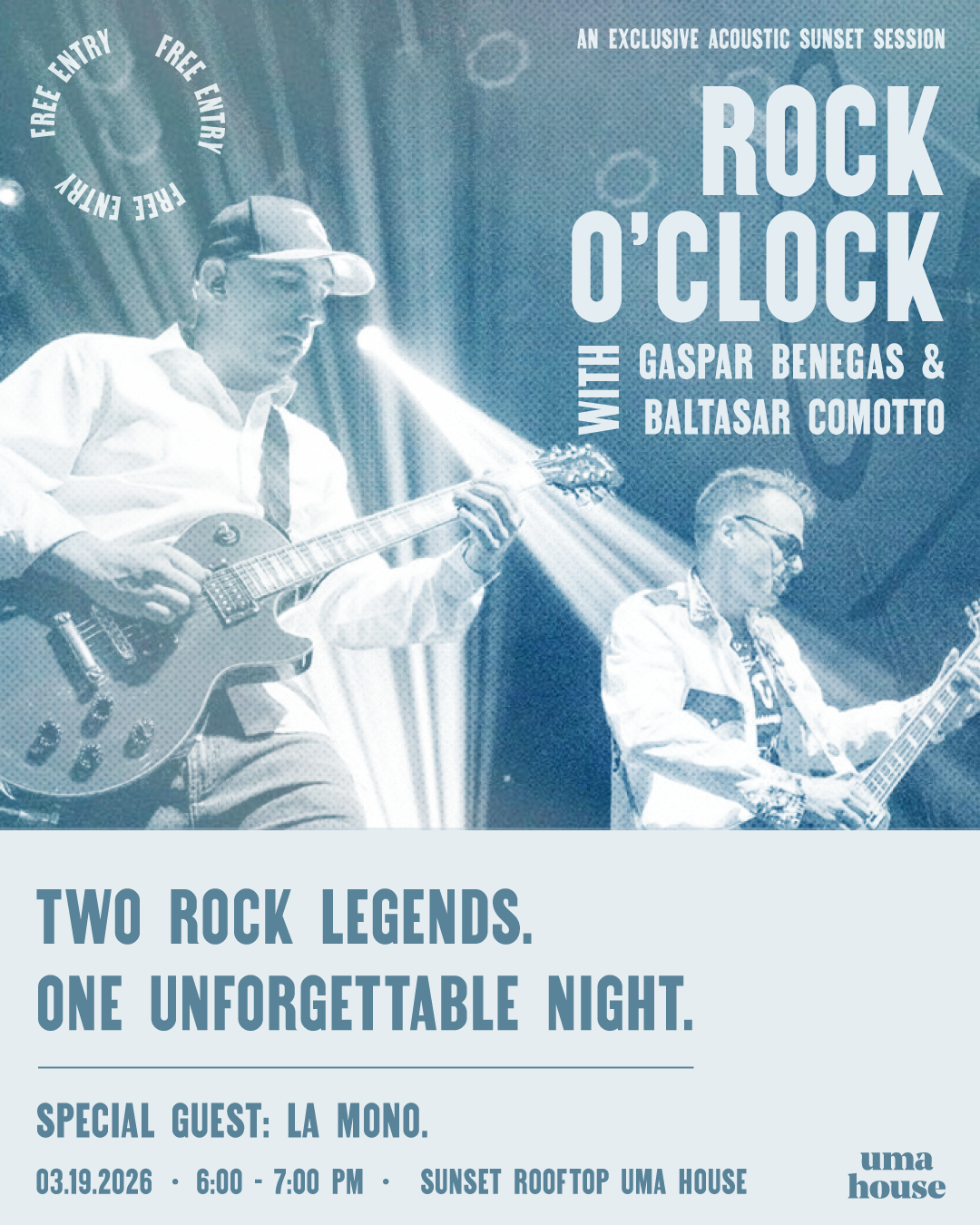 RESERVEJunte-se a nós no rooftop para uma sessão ao vivo especial com Gaspar Benegas & Baltasar Comotto — dois artistas, duas guitarras e a trilha sonora perfeita para a golden hour.
